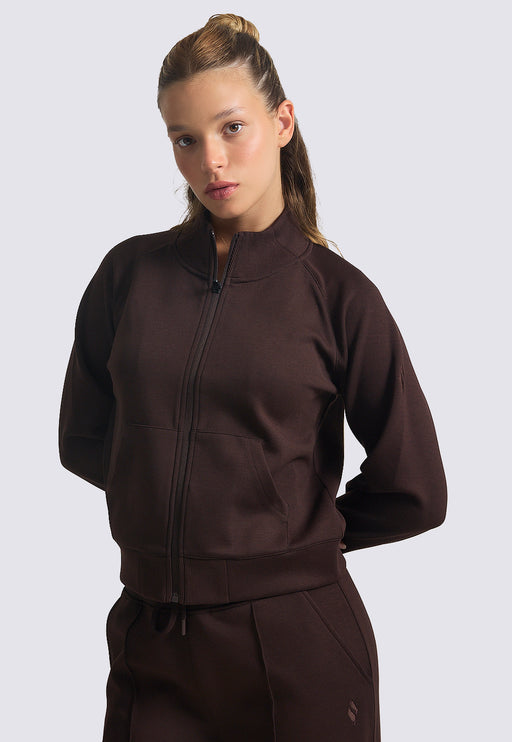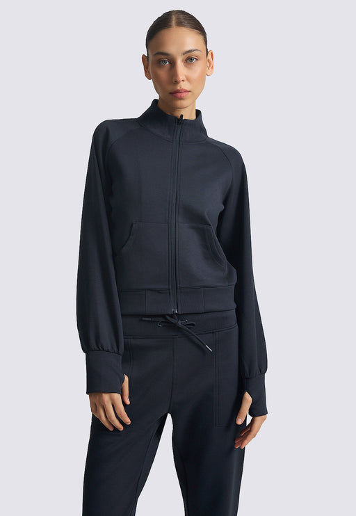 ז'קט רוכסן בעיצוב ספורטיבי־אלגנטי באורך קרופ עם כיסי קנגרו, עשוי מבד אינטרלוק רך ונעים (77.5% פוליאסטר, 17% ויסקוזה, 5.5% ספנדקס) לנוחות מקסימלית ו...