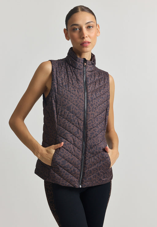 ווסט פוך לנשים Skechers On-The-GO Luxe – חמימות קלה עם טוויסט אופנתי. עשוי בד GO SHIELD קל משקל ונושם, עם הדפס נמר. כולל רוכסן קדמי מטאלי, תפרים מח...