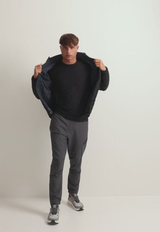 מעיל ספורטיבי עשוי בד קל משקל 100% פוליאסטר. בעל כיסים בסגירת רוכסן וגומי בשרוולים.