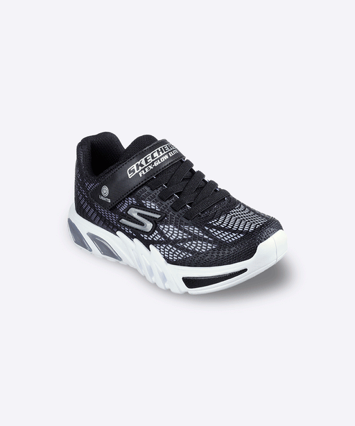 Skechers S-Lights®: Flex-Glow Ultra נעלי ספורט צבעוניות הכוללות חלק עליון מרשת אומברה עם שכבות סינתטיות, שרוכים נמתחים קבועים וסגירה אדפטיבית, בתוס...