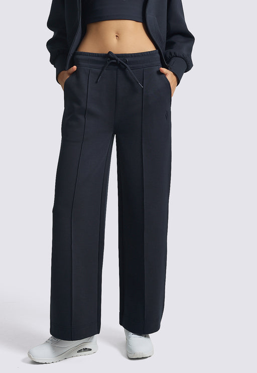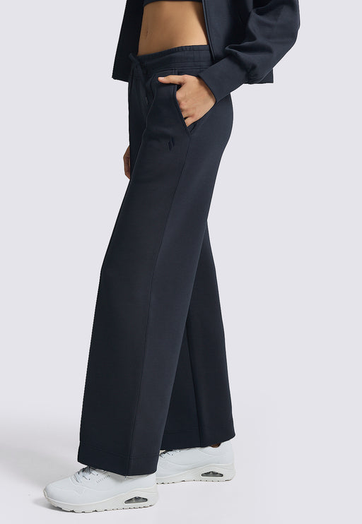 מכנס ארוך מבד ריב נוח בטכנולוגיית GO LUXE™ עם גומי ושרוך קשירה במותן.80% פוליאסטר ממוחזר20% ספאנדקסמידות דוגמנית: S