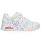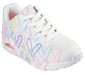 סקצ'רס בשיתוף פעולה עם האמן המוכר JGoldcrown מציגים סניקרס קלאסיות בהדפס הלבבות האייקוני. מעוצבות עם עקב וודג' וסוליה עם כרית אוויר גלויה בטכנולוגיית Skech-Air ועם רפידת Air-Cooled Memory Foam® המאווררת וזוכרת את תצורת כף הרגל לנוחות לאורך כל היום.