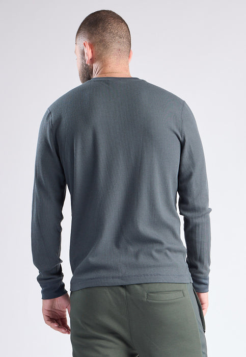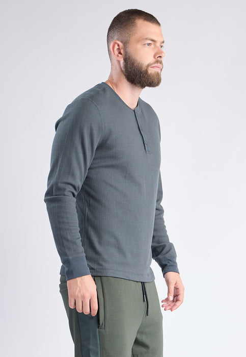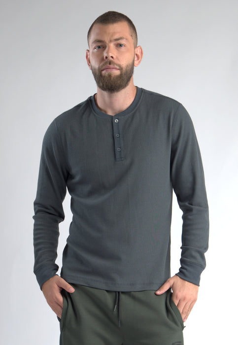 חולצת וופל שרוול ארוך מבד נמתח GO KNIT® עם סגירת כפתורים בחזה.