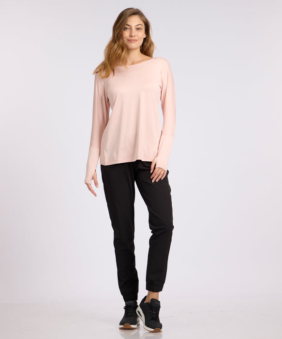 חולצה שרוול ארוך עם מעטפת בגב 77% פוליאסטר 23% לייקרה