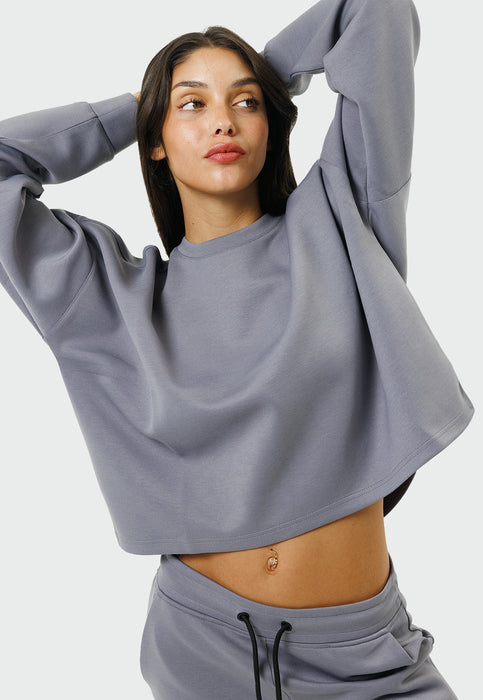 סווטשירט אינטרלוק קרופ בגזרת עטלף.