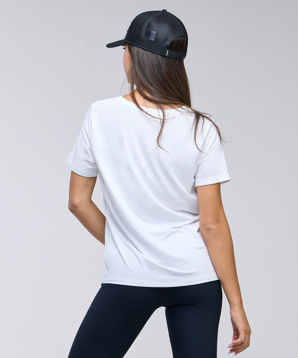 חולצת טי קצרה עם צווארון 'V', מבד נמתח, מנדף ונעים למגע. בעלת כיס קדמי. גזרה משוחרת.